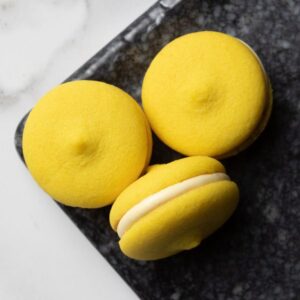 Darlings to delikatne, eleganckie biszkopty cytrynowe z aksamitnym kremem cytrynowym, które zachwycają prostotą i wyjątkowym smakiem. Dwa miękkie ciasteczka, barwione wyłącznie naturalnymi barwnikami roślinnymi, skrywają w środku gładkie, aromatyczne nadzienie o świeżej, owocowej nucie.